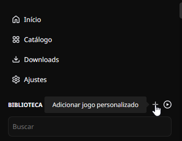 Para adicionar algum jogo, basta clicar no ícone de +, na barra lateral: