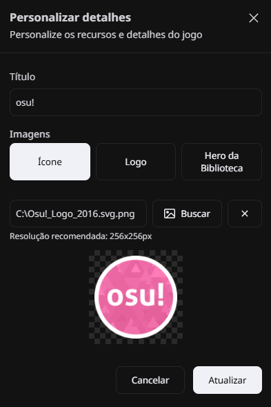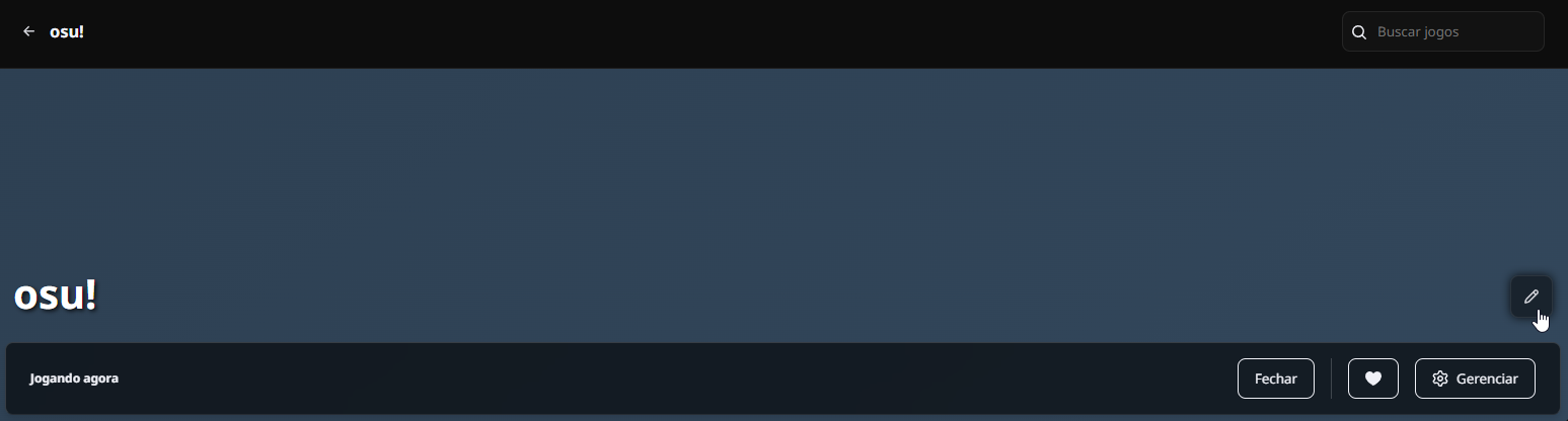 Por padrão, jogos customizados não irão ter nenhuma imagem personalizada. Para adicionar imagens personalizadas, você pode clicar no ícone de edição. Você pode editar o ícone do jogo, logo, banner, e nome.