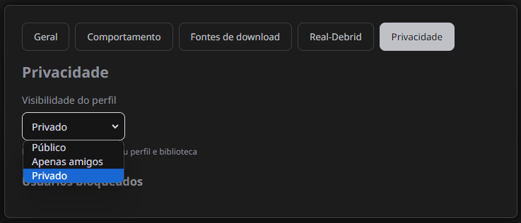 Em visibilidade do perfil, alterar para "apenas amigos" caso queira que somente seus amigos vejam o seu perfil, ou "privado" caso queira que somente você veja seu perfil.